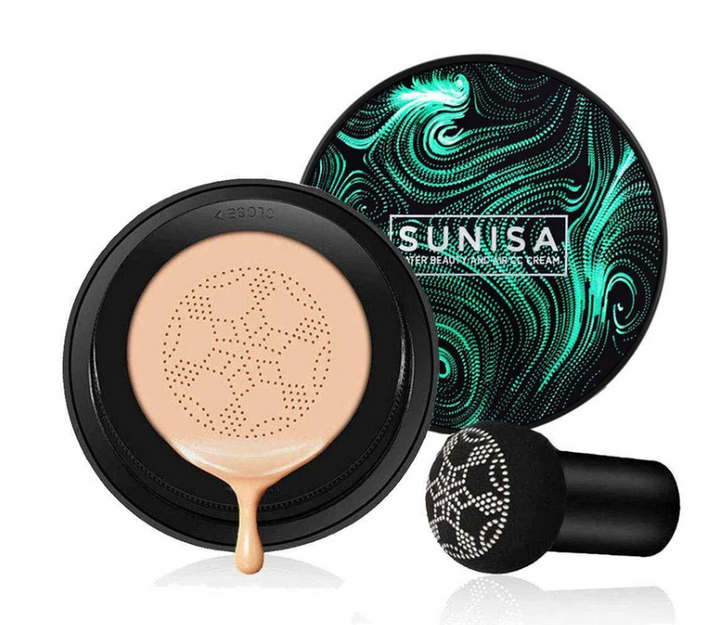 - Turn the lid clockwise to open the protective film, wet the mushroom head with pure water, then use the cleaned small mushroom puff to take a proper amount of foundation, a small number of evenly pressed makeup.